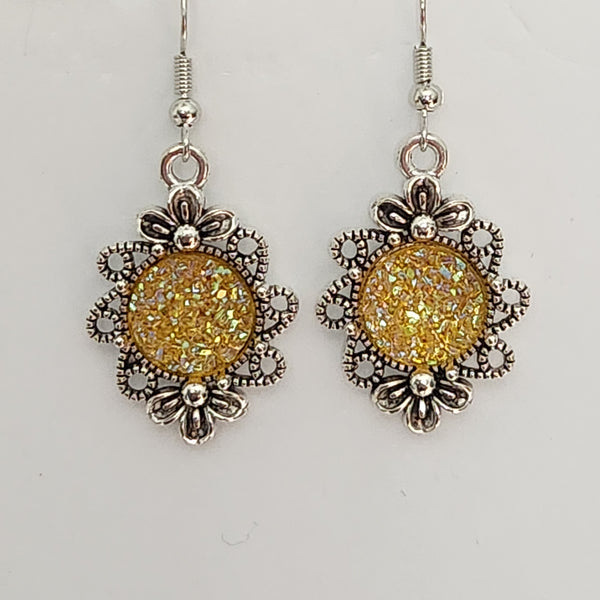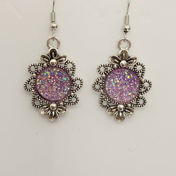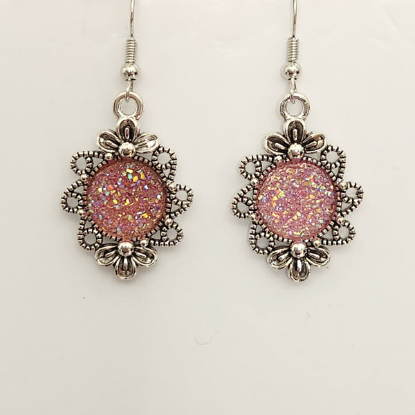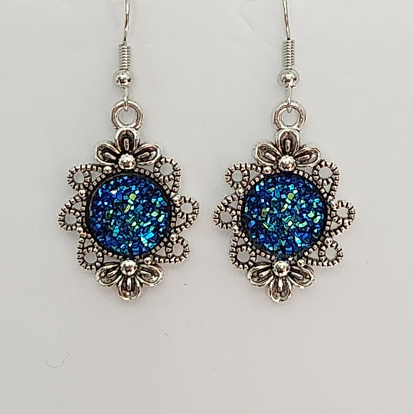 Druzy flower-shaped earrings with 12mm sparkly druzy centers