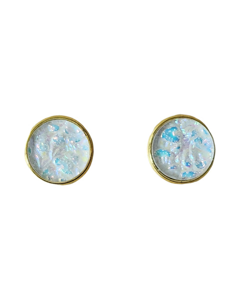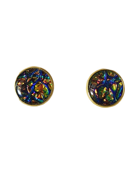 The result is a pair of studs that catch the light from every angle, shifting between colors as you move. Mounted on hypoallergenic stainless steel posts, these earrings are comfortable, lightweight, and perfect for sensitive ears.