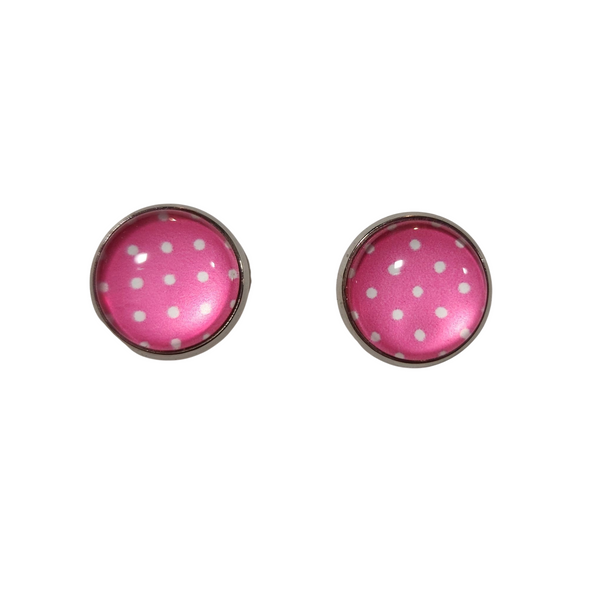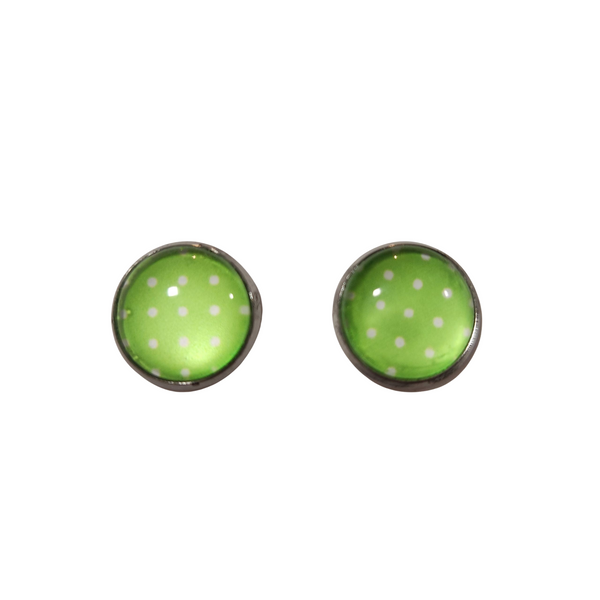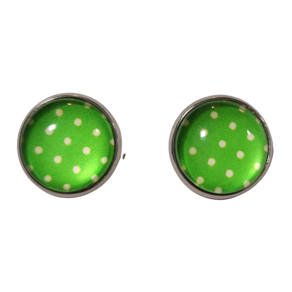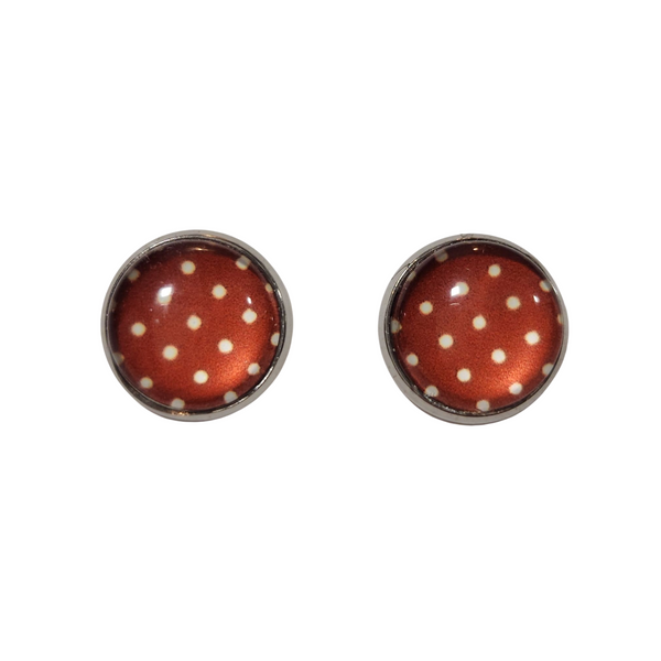 Bring a touch of fun and bold color to your look with these Polka-Dot Stud Earrings from Blue Bourbon Designs. These playful earrings feature vibrant, patterned cabochons set on hypoallergenic stainless steel posts, making them lightweight, comfortable, and perfect for sensitive ears.