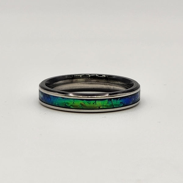 Elevate your jewelry collection with these mesmerizing dichroic resin rings handcrafted by Blue Bourbon Designs. Built on a durable 2mm stainless steel grooved band, each ring is filled with premium dichroic material and resin, then hand turned on a lathe for a smooth, polished finish that feels as good as it looks.