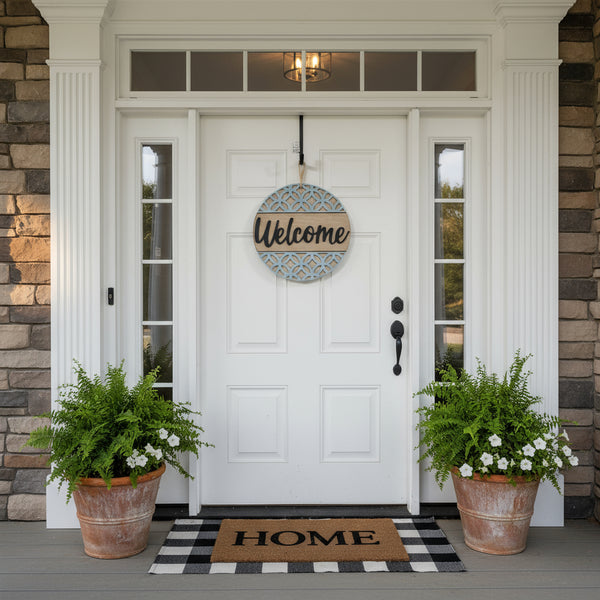Each sign features a natural sisal rope hanger for easy display and a rustic touch that complements any front door, porch, or entryway. With its layered details, smooth paint finish, and handcrafted assembly, no two signs are exactly alike — each one is a unique piece of functional art.